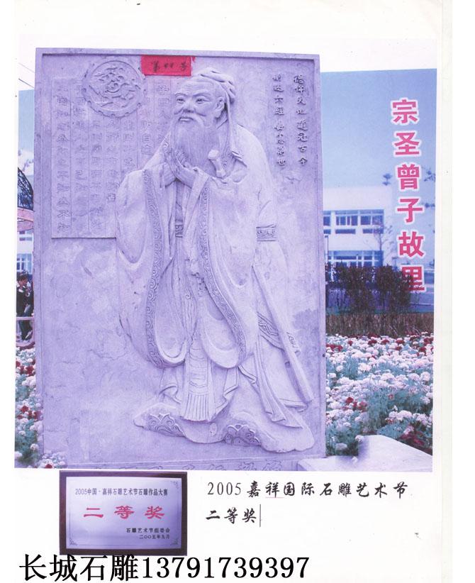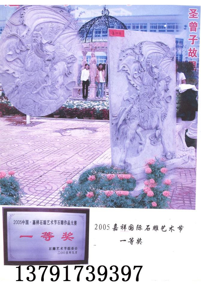 《汉白玉石雕麒麟望月》《高山流水》《浮雕观音》等,嘉祥石雕大师欧阳一翠创作的《石雕孔子像》《出口阿富汗大使馆的西游记石雕》《石雕牌坊》等,这些作品造型独特,形象优美,内涵深刻、丰富,同时也折射出文化创意的可贵精神。因此,这些作品有的被中南海紫光阁、人 民大会堂、中华民族艺术珍品馆等机构收藏,有的还获得"银奖杯""旅交会""工美大师展"等奖项。值得一提的是,在今年5月举办的"蜕变—嘉祥雕塑创新作品展暨'同保杯'山东省嘉祥县石雕大赛"活动中,许多件创新作品脱颖而出,给大众展示了一场耳目一新的"视觉盛宴", 如和连朝创作的《现代石牌楼》、安秀英创作的《仿古石牌坊》、马腾原创作的《大爱无疆》、刘同花创作的《华山女神》、王昭辉创作的《无形之有形》等作品。每次欣赏 这些精品佳作时,都能被其中的文化创意深深吸引。在展览期间,一位来自北京的游客一下子看中了其中的十多件作品,并高价收藏。所以说,文化创意是嘉祥石雕 成为经典的根本所在。正是这种富有文化内涵的创新,把嘉祥石雕艺术推向更高的层面,步入公众的艺术殿堂,受到世人的瞩目。艺术创作只有从美学和文化内涵的 高度出发,才能创造出真、善、美相统一的艺术作品,