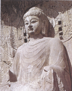 唐代的佛教造像很好地把理想与现实相结合,既有博大凝重的一面,又有典雅鲜活的一面;既有威武有力的一面,也有柔和细腻的一面。这些造像面相丰满,比例适度,姿态优美,神情庄静,表现了各自不同的“情性笑言之势”。明眸凝视手印多变的佛像、婀娜多姿盛装艳服的菩萨、严谨持重饱经风霜的佛弟子迎叶、温顺虔诚天真聪敏的弟子阿难、镇定自若威风凛凛的天王、刚强勇猛筋肌暴凸的力士、丝带飘飘凌空飞舞的飞天,各有不同的神情风采,