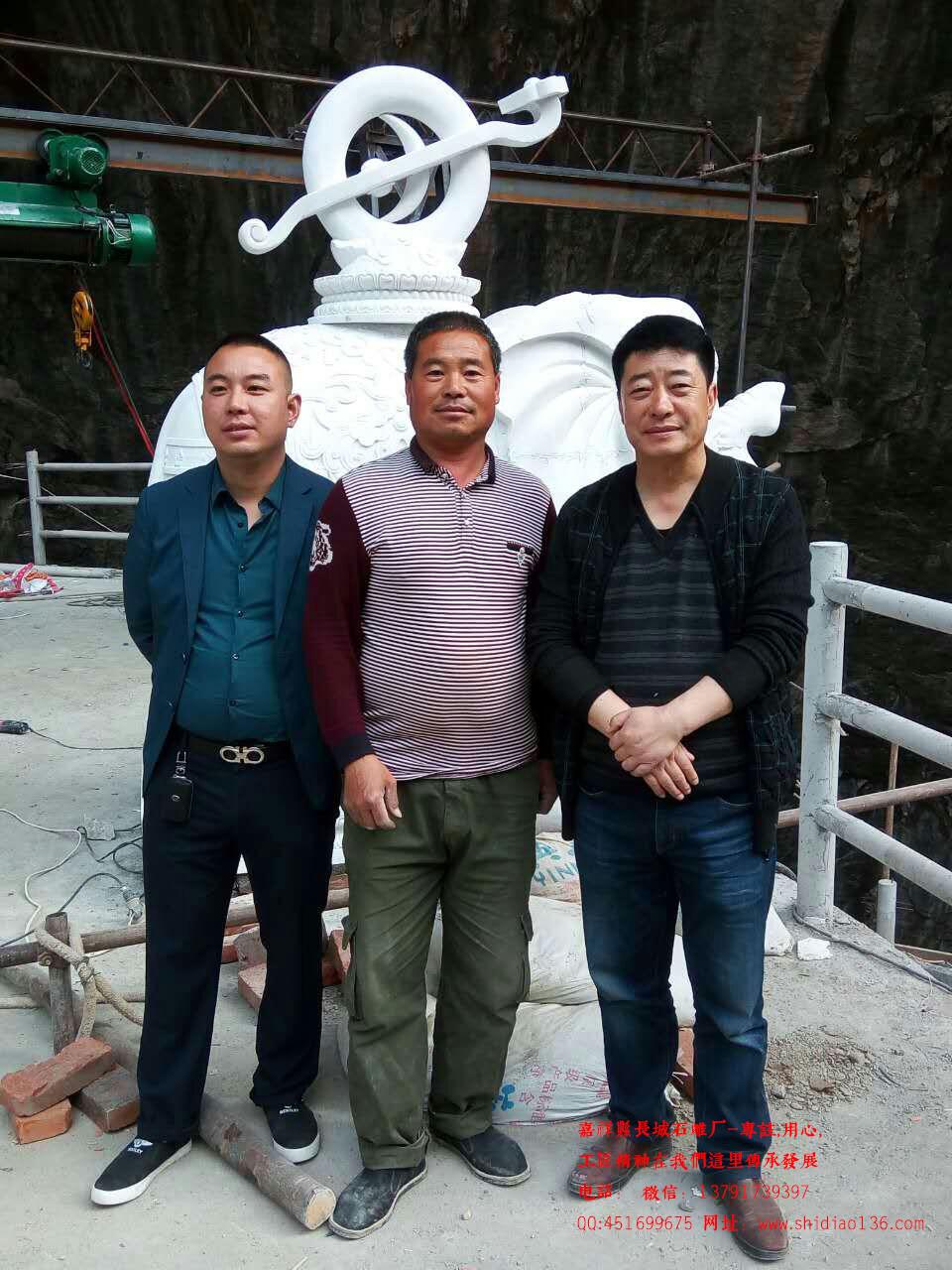 汉白玉石雕大象安装完城后,和甲方负责人合影留念: