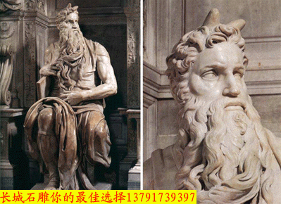 米开朗基罗艺术语言和他的创作内容是相适应的。他刀笔之下的人物形象如同巨人般屹立—他表现的是力量,是能够战胜一切困难的人的力量。这些形象在体格上是雄伟健壮,在精神上是勇敢无畏,表达了时代的要求、人民的理想。他常从予他的英雄雕像以极端理想化的完美形象,仿佛他也觉着现实中没有这种理想的英雄,千是借着宗教传说中的人物来刻划了?!赌ξ鳌肥裰谱鞯娜〔挠谑ゾ?摩西是古代犹太人最早的领袖,是使上帝的愈志在地上实现的执行者。他带领犹大人逃出埃及领地,摆脱了埃及法老的奴投,建立了独立的北太人国家,并成为代上帝向犹太人传谕“十诫”,的立法者。此像为一坐着的老人,头上雄有两个小渐,象征从摩西身上放射出的非凡的光芒。他右手拿着刻有“十诫”的两块石板,左手托着长垂至腹的卷曲的美髯,头向左倾回旋,神情严厉而全神贯注‘左腿向后弯曲,脚面抬起,仿佛将随时因懊怒而起-圣经传说:他发现被上帝所庇护的犹太人,没有按上帝的“十诚”办事的时侯.曾债怒地摔碎了十诫板。摩西那强健发达的筋肉,丝毫没有老迈衰萎的影子,和《哀掉羞督》中过于年轻的圣母一样,这是艺术中所特许的夸张手法,它赋予石雕摩西的形象以理想化的健美和巨人般的力量。他的整个容貌显示出深刻的慈、饱满的精力和坚强的意志。正象一个公正无私的法律捍卫者和人民的?;ふ摺R帐跫腋叨鹊募记?,赋予大理石雕刻以活跃的生机,仿佛在他那雕琢得精确逼真、青筋爆出的血管中,正沸腾着生命的血液。