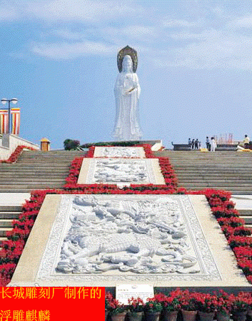 麒麟浮雕安装地点;海南观音院108观音像前,浮雕御路。